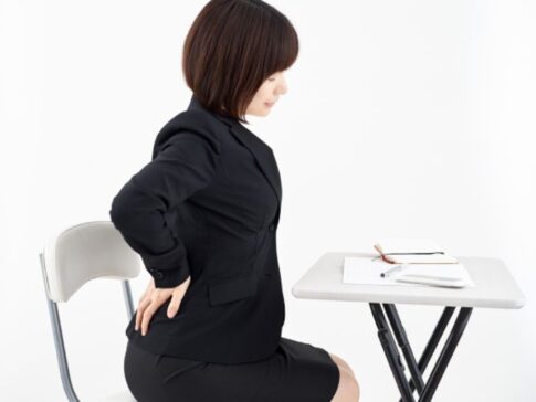 1日8時間以上座り続けることで、骨盤が後傾し、腰椎への圧迫が増加します。